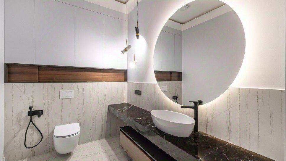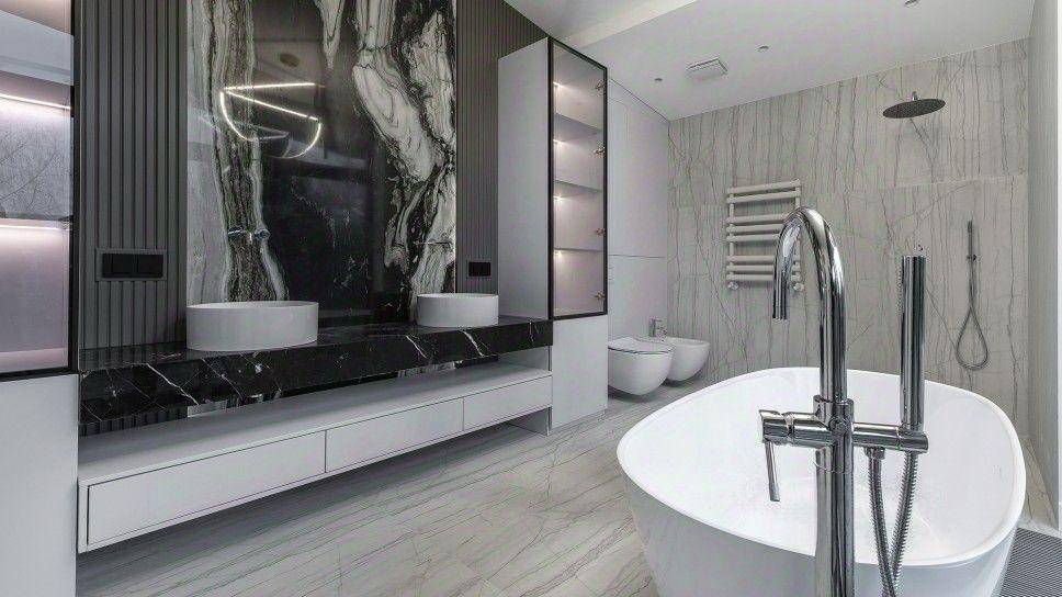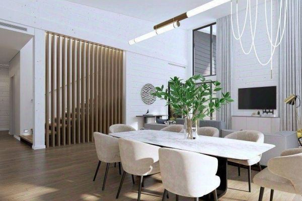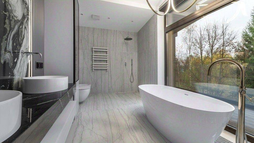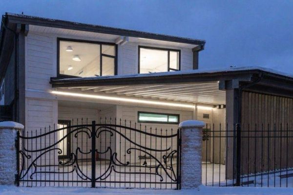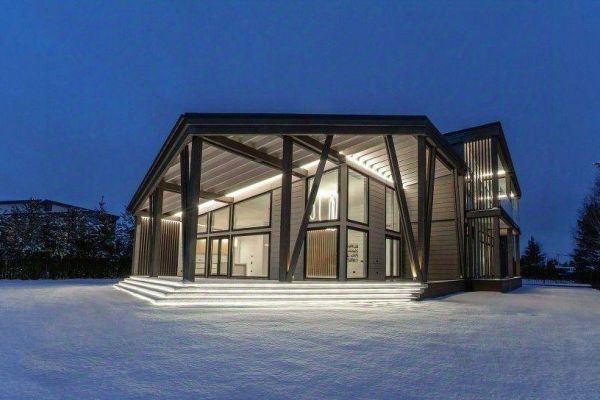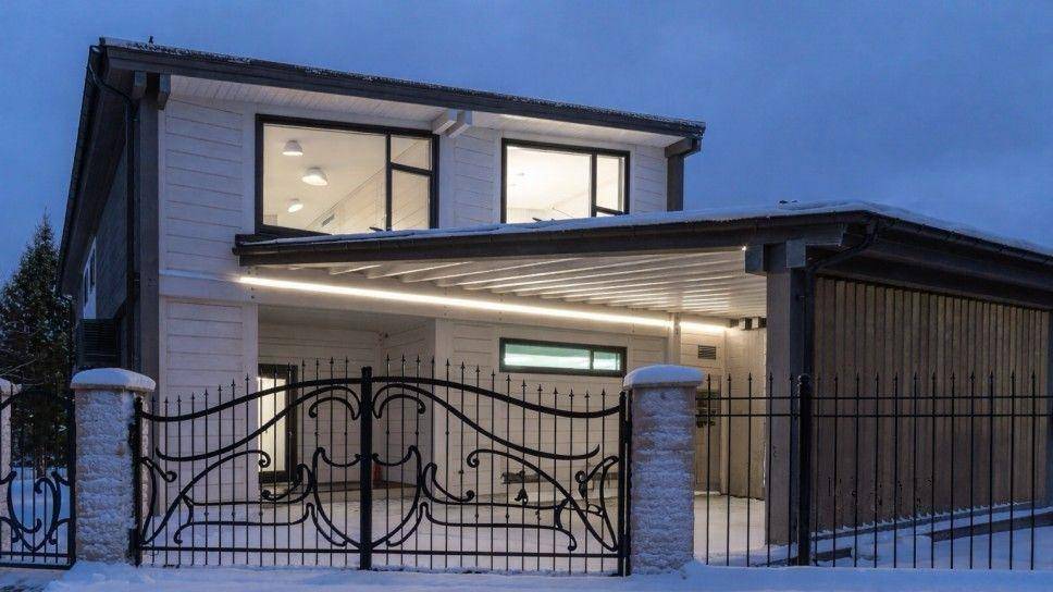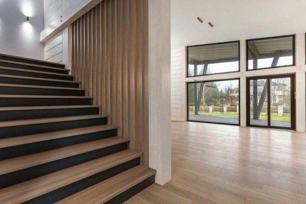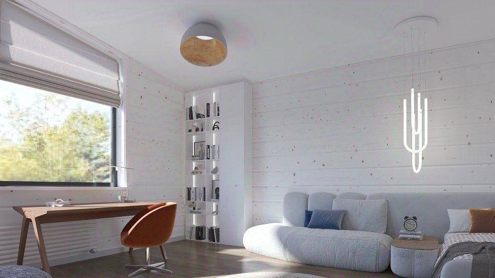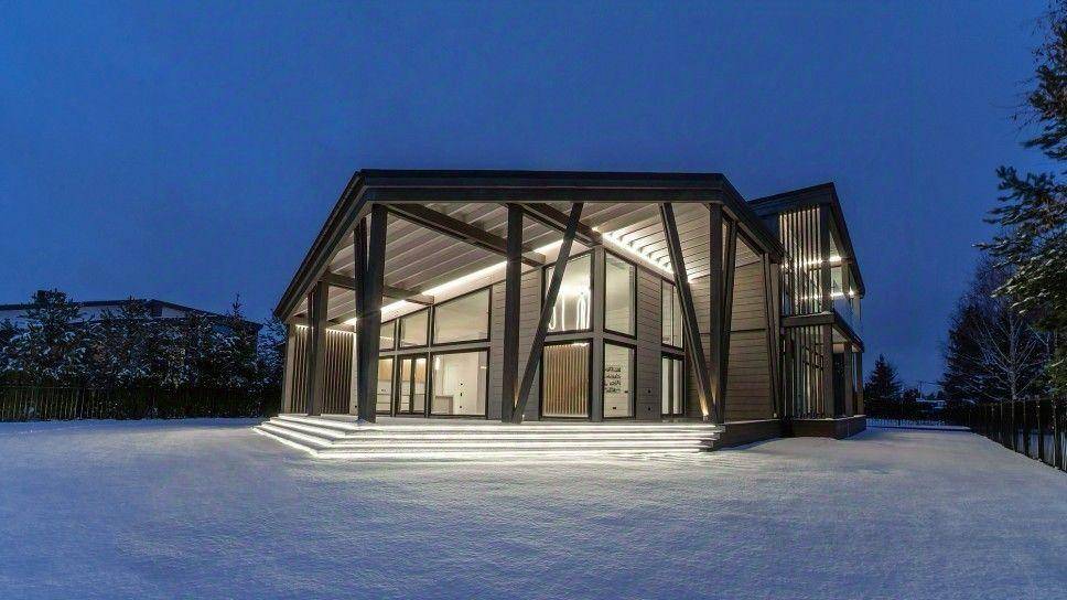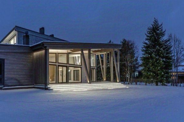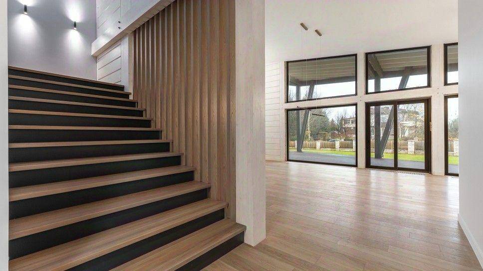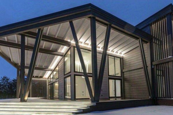 Дом из клеёного бруса 2-х уровневый, деревяный, площадью 500 кв.м. На первом этаже: прихожая, большая гардеробная, гостевой санузел, кухня-столовая-гостиная с выходом на террасу 90м2, постирочная, кабинет, гостевая спальня с санузлом, котельная, кладовая для спортивного и садового инвентаря, навес для авто. На втором этаже: хозяйская спальня с гардеробной и санузлом, 2 детские спальни с санузлами и гардеробными, холл.