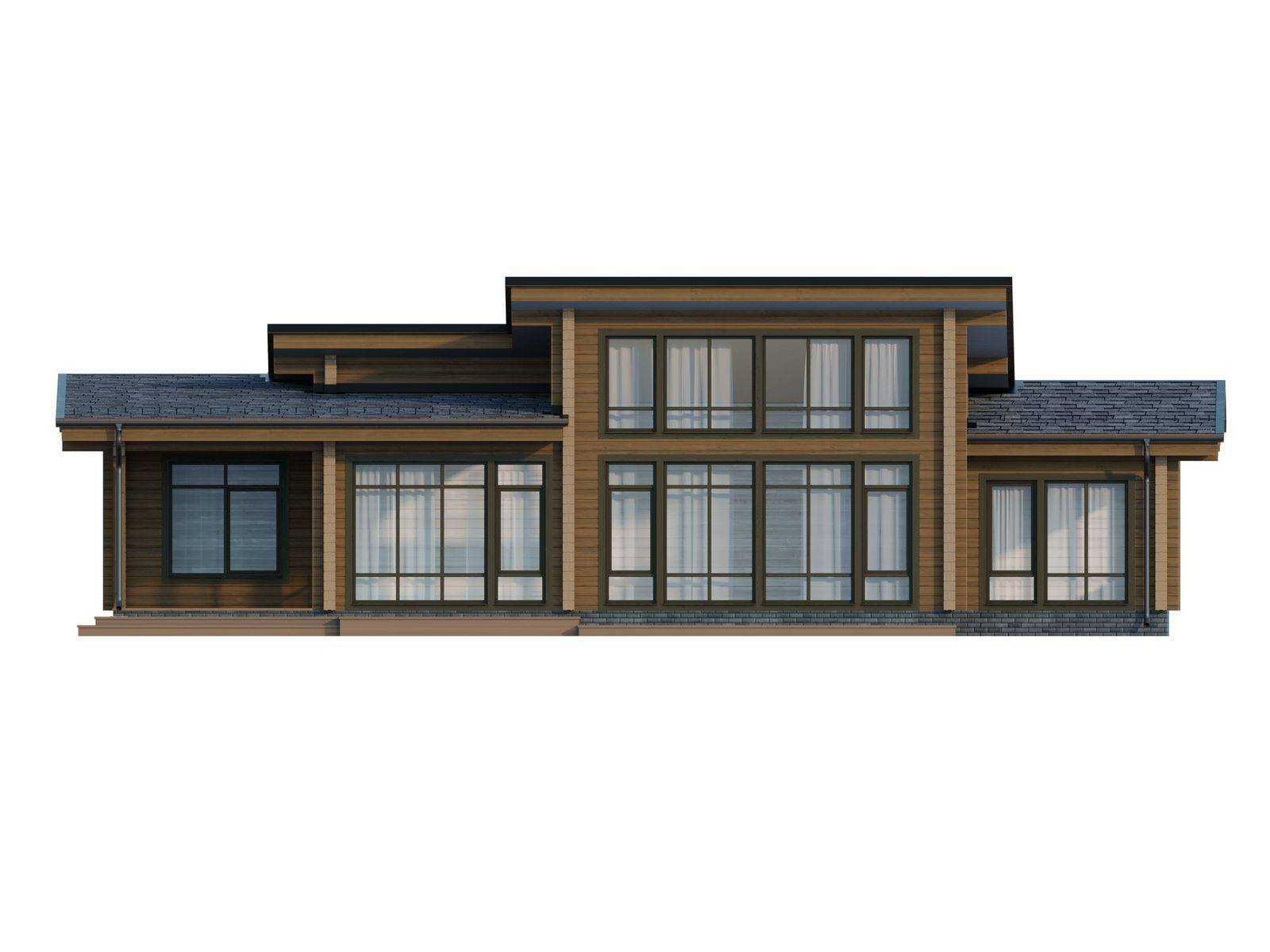 Лестница на второй этаж (если присутствует в проекте) исполняется техническая. Входная группа комплектуется ступенями. Дверные и оконные проемы выполняются с ройками. Двери и окна не входят в данную стоимость и заказываются отдельно по желанию заказчика. Наружная и внутренняя отделка не выполняется.