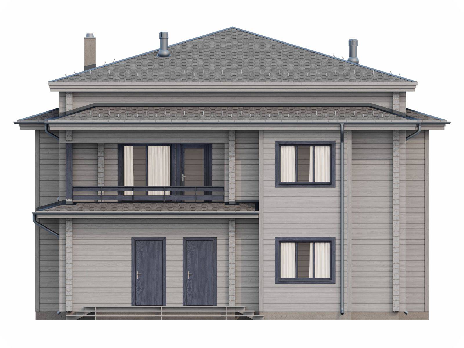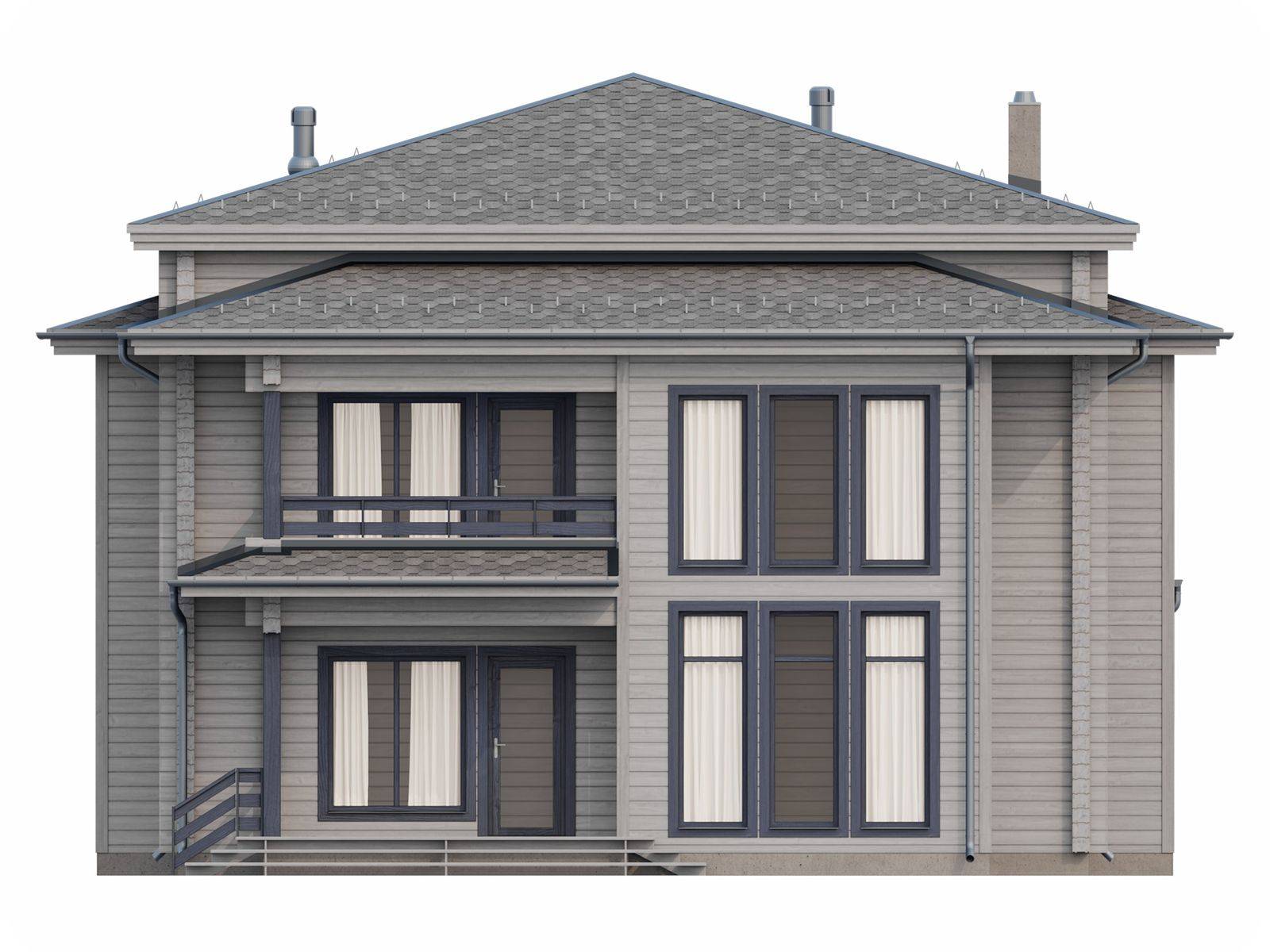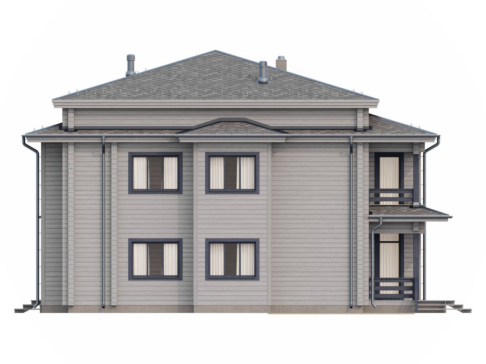 Лестница на второй этаж (если присутствует в проекте) исполняется техническая. Входная группа комплектуется ступенями. Дверные и оконные проемы выполняются с ройками. Двери и окна не входят в данную стоимость и заказываются отдельно по желанию заказчика. Наружная и внутренняя отделка не выполняется.