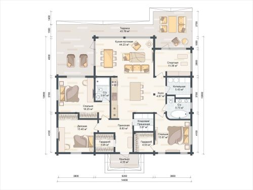 Лестница на второй этаж (если присутствует в проекте) исполняется техническая. Входная группа комплектуется ступенями. Дверные и оконные проемы выполняются с ройками. Двери и окна не входят в данную стоимость и заказываются отдельно по желанию заказчика. Наружная и внутренняя отделка не выполняется.