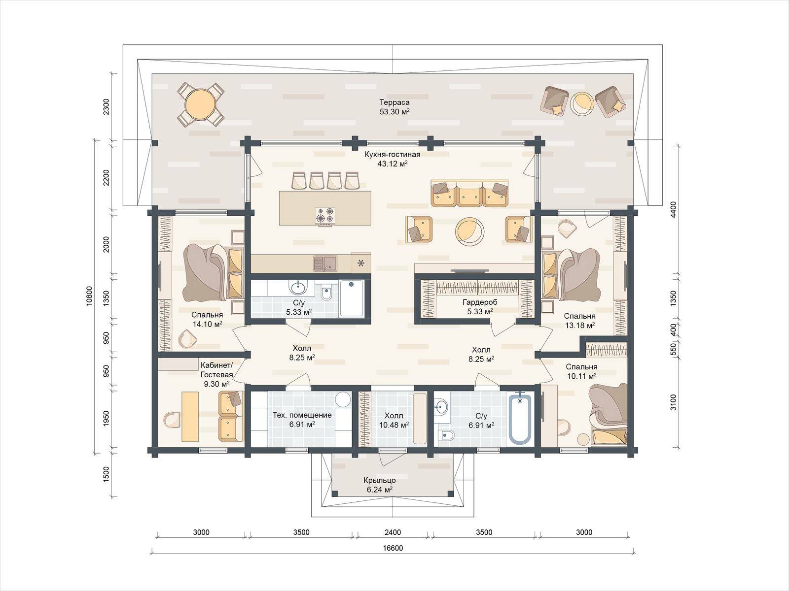 Лестница на второй этаж (если присутствует в проекте) исполняется техническая. Входная группа комплектуется ступенями. Дверные и оконные проемы выполняются с ройками. Двери и окна не входят в данную стоимость и заказываются отдельно по желанию заказчика. Наружная и внутренняя отделка не выполняется.