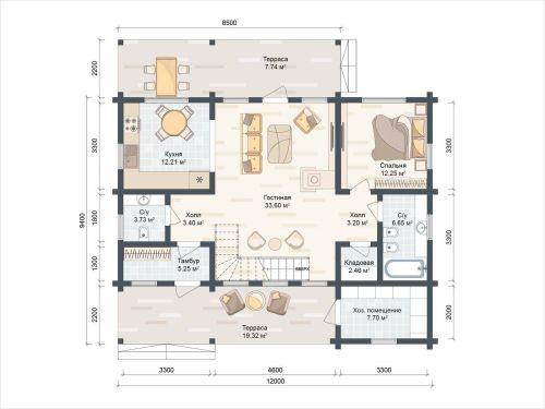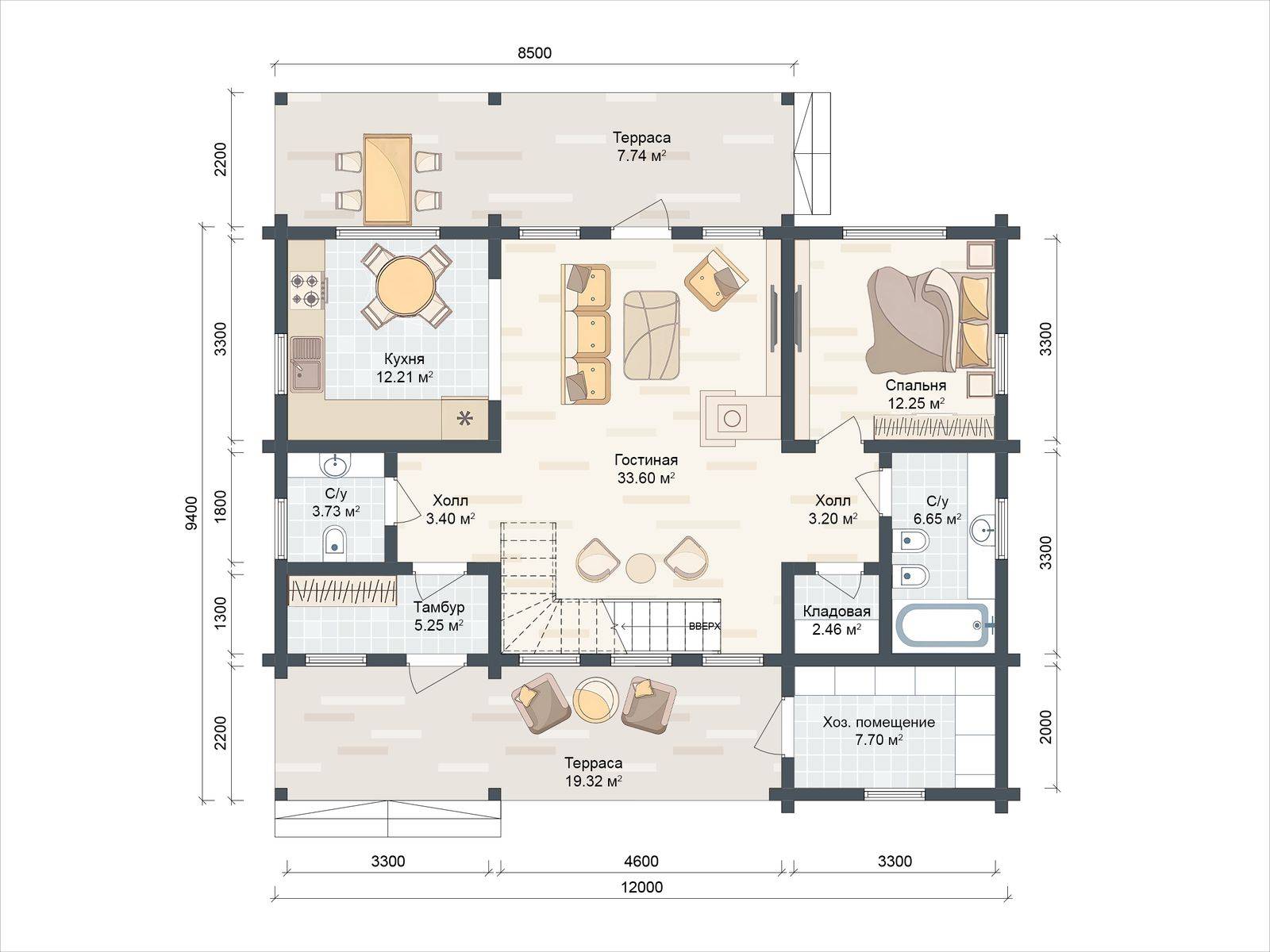 Лестница на второй этаж (если присутствует в проекте) исполняется техническая. Входная группа комплектуется ступенями. Дверные и оконные проемы выполняются с ройками. Двери и окна не входят в данную стоимость и заказываются отдельно по желанию заказчика. Наружная и внутренняя отделка не выполняется.