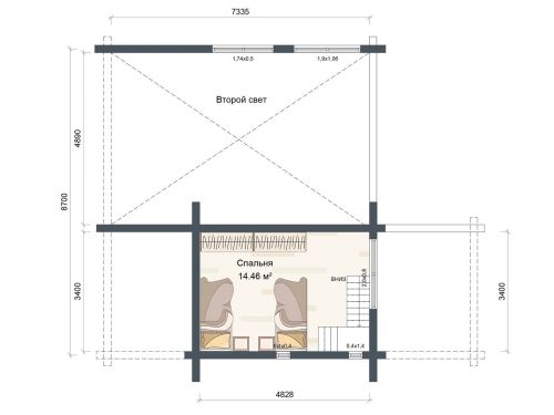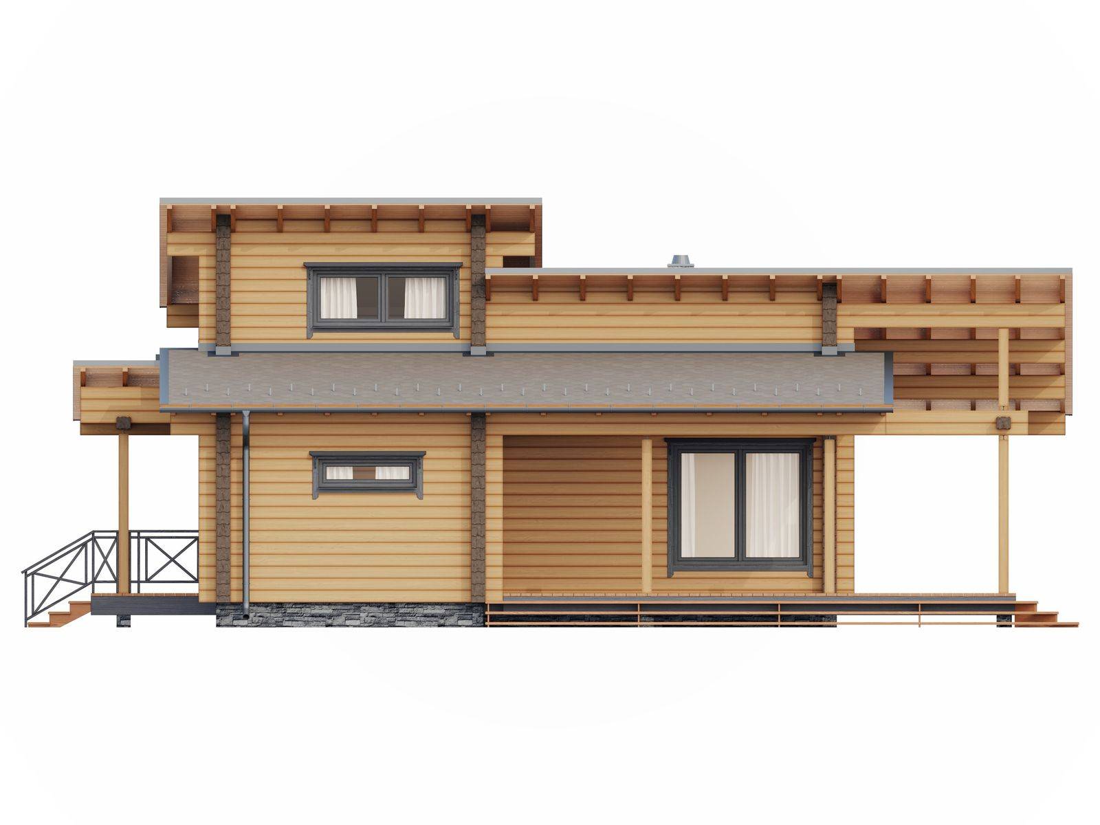 Лестница на второй этаж (если присутствует в проекте) исполняется техническая. Входная группа комплектуется ступенями. Дверные и оконные проемы выполняются с ройками. Двери и окна не входят в данную стоимость и заказываются отдельно по желанию заказчика. Наружная и внутренняя отделка не выполняется.