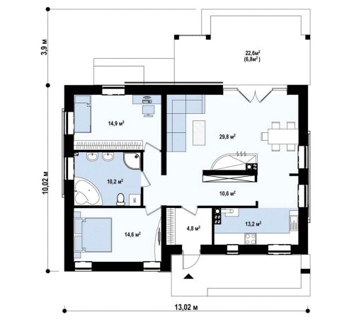 10,02 х 13,02 м -