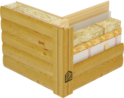 - Стена состоит из трех жестко связанных деревянных каркасов: внешнего, промежуточного и внутреннего.